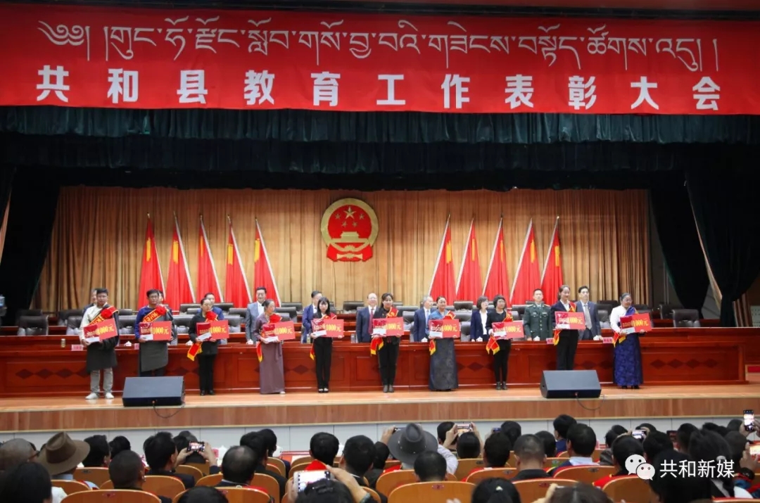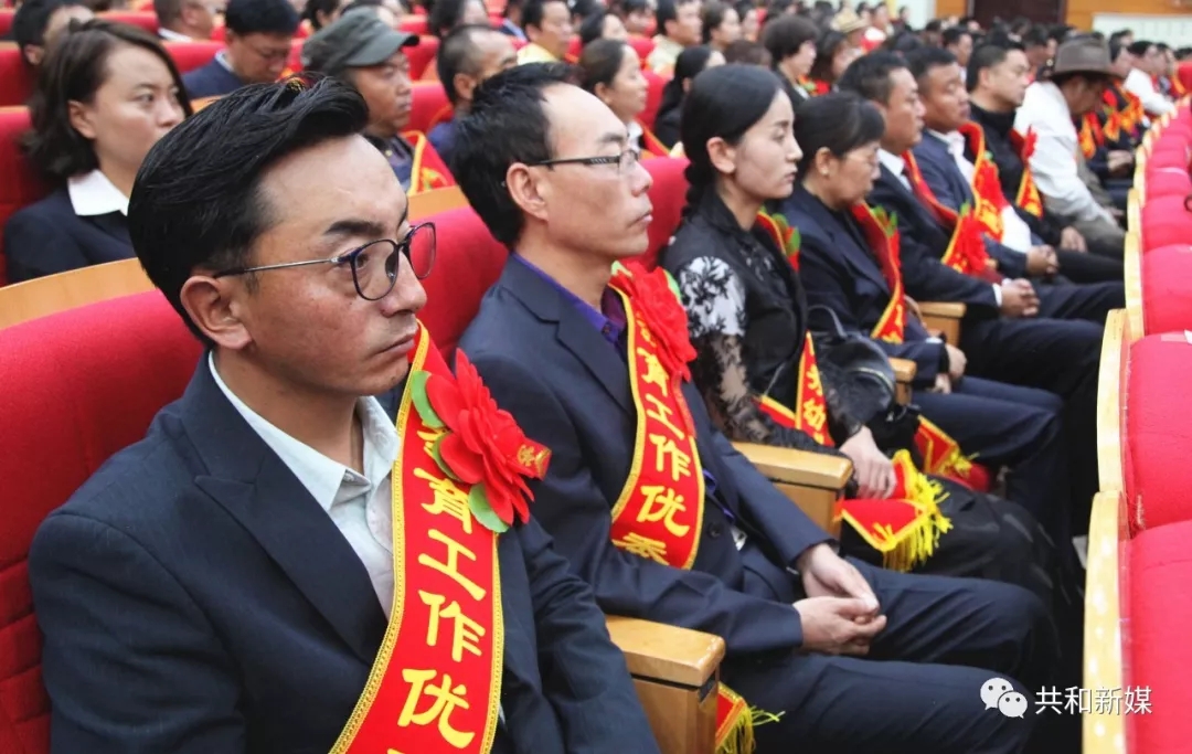 在喜迎中华人民共和国成立70周年和第35个教师节来临之际,为认真贯彻落实全国全省教育大会和全省基础教育工作会议精神,进一步总结成绩、明确目标、表彰先进、树立典范,9月6日,共和县召开教育工作表彰大会,对全县25个先进集体和163名教育先进个人进行了表彰,在全县营造了尊师重教、兴学育人的浓厚氛围。在家各县级领导、各乡镇党政主要负责同志、县直各机关单位主要负责人,以及全县各中小学教师代表和县教育局全体干部职工参会,并邀请了州教育局副局长豆拉到会指导。州委常委、县委书记陈鸿林主持大会。