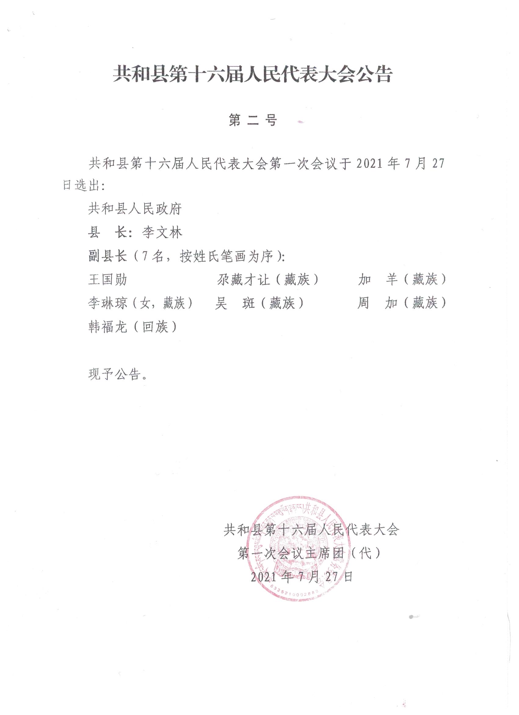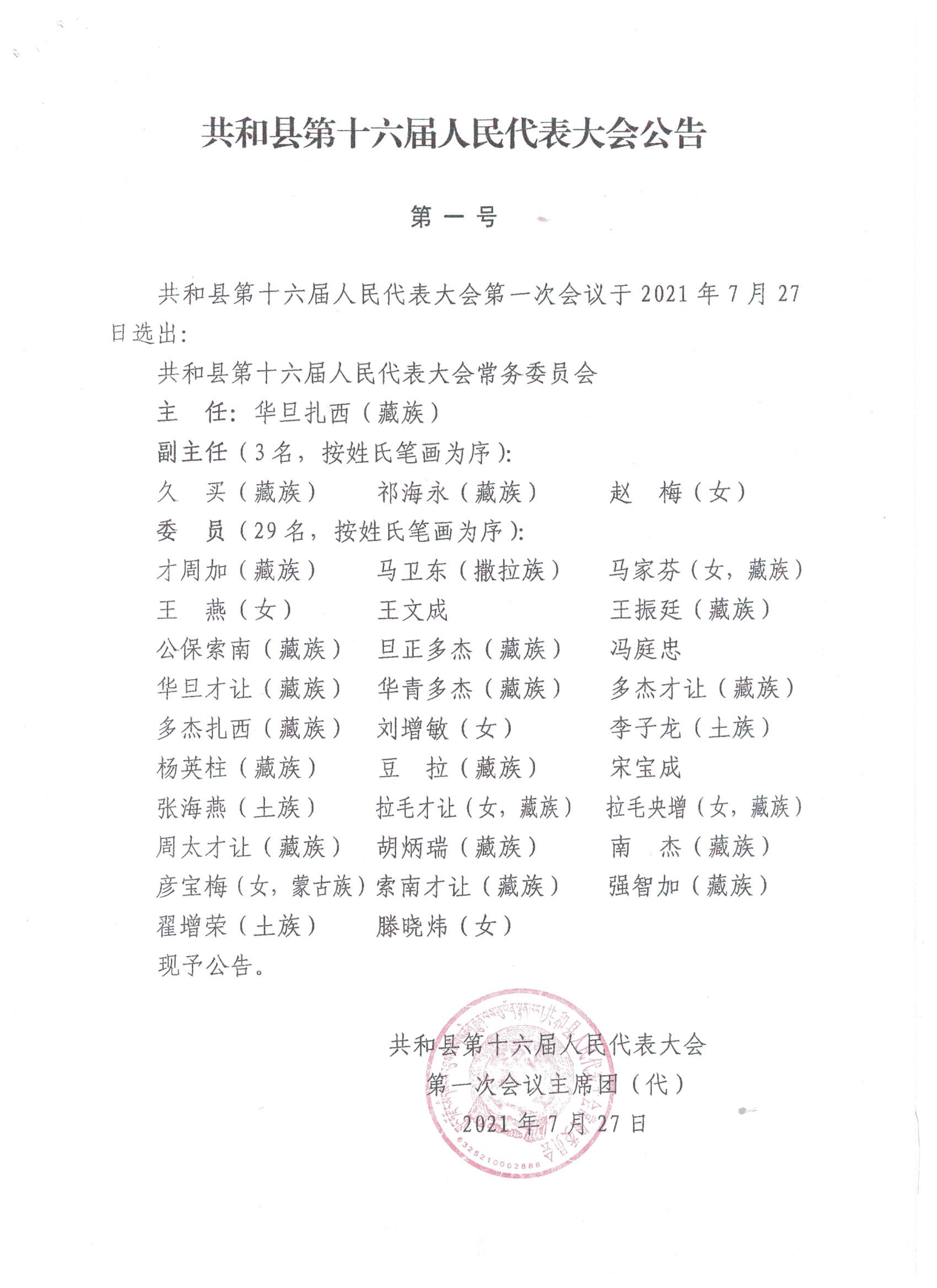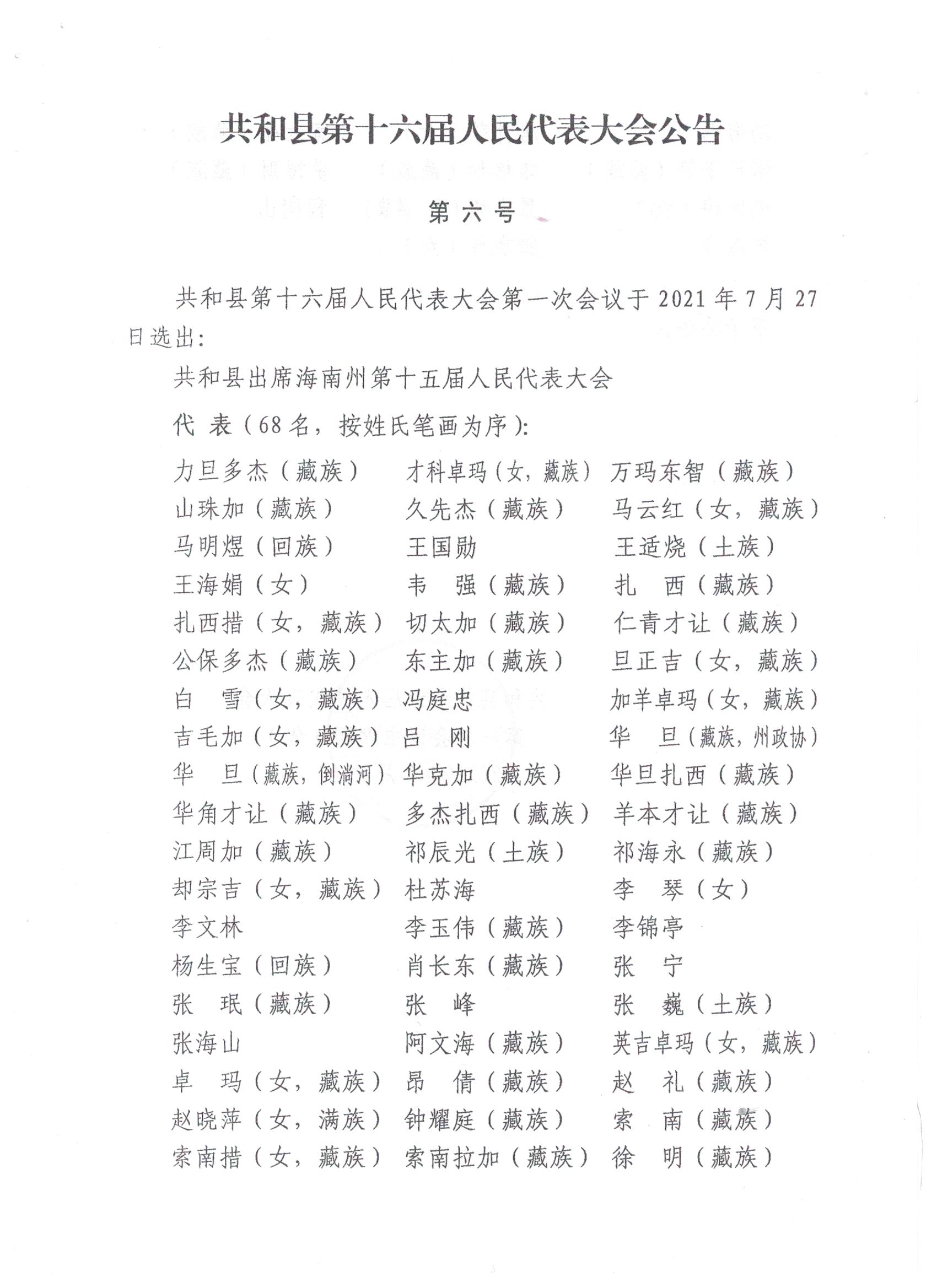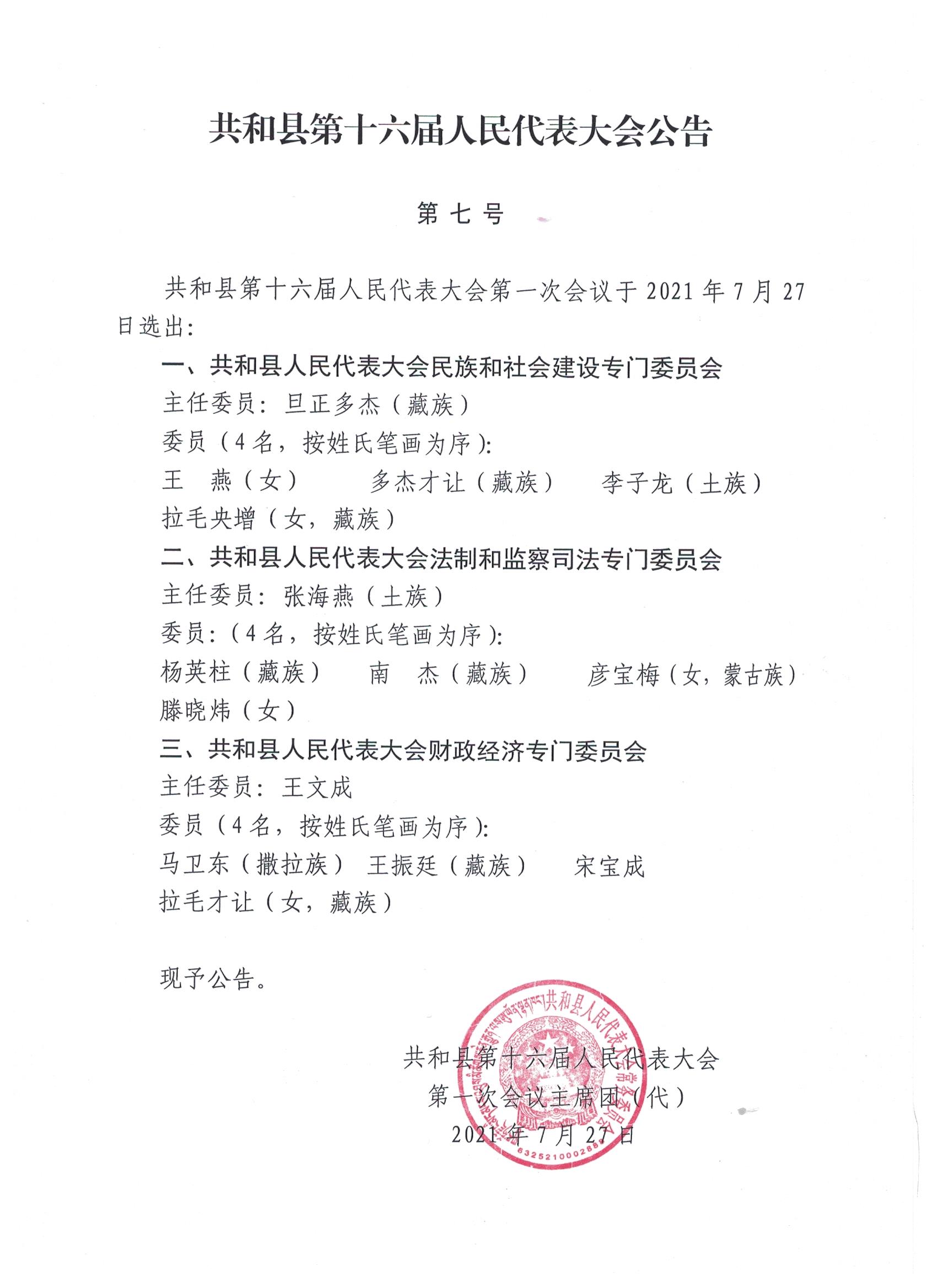 共和县第十六届人民代表大会公告(一至七号)