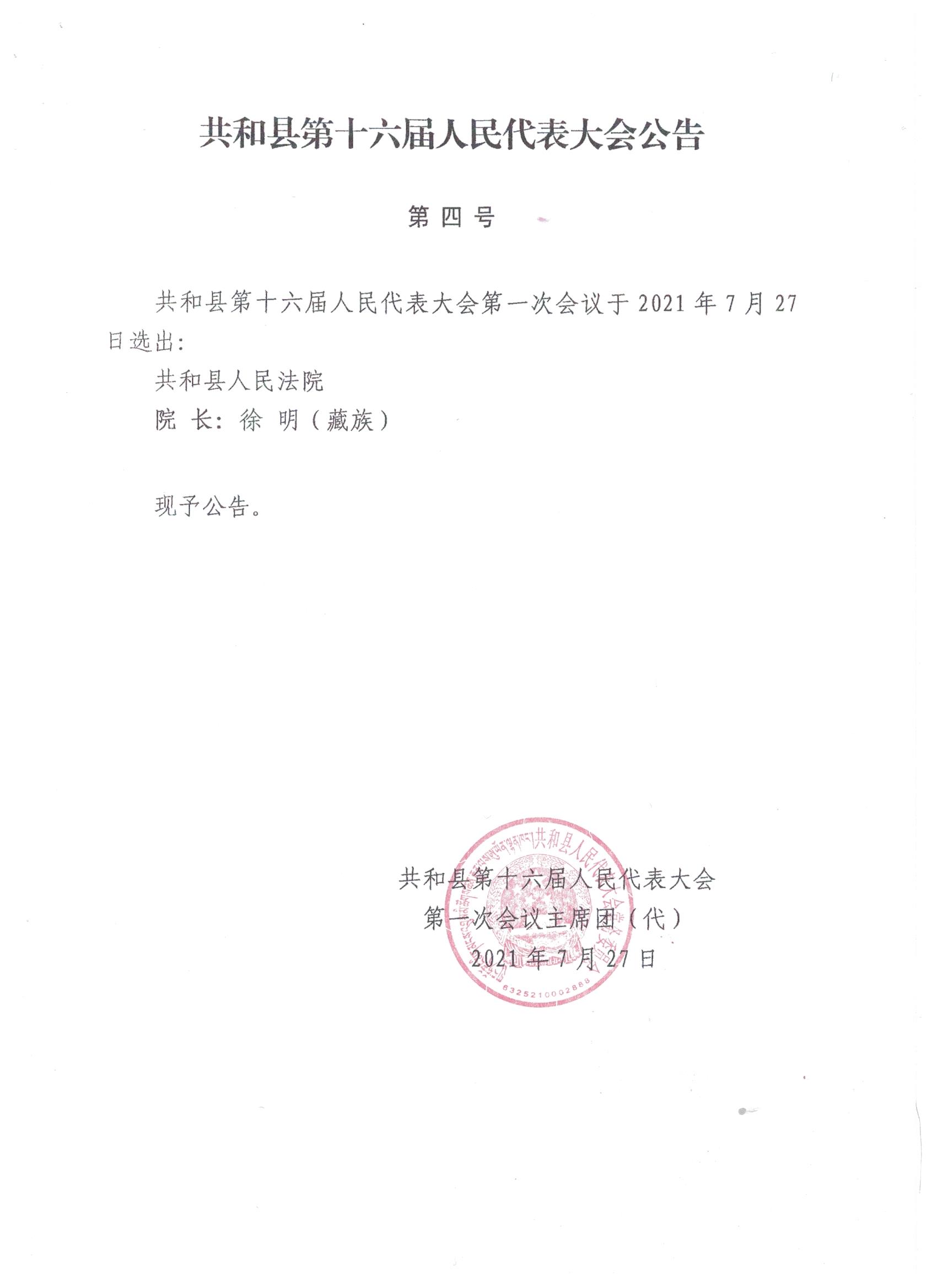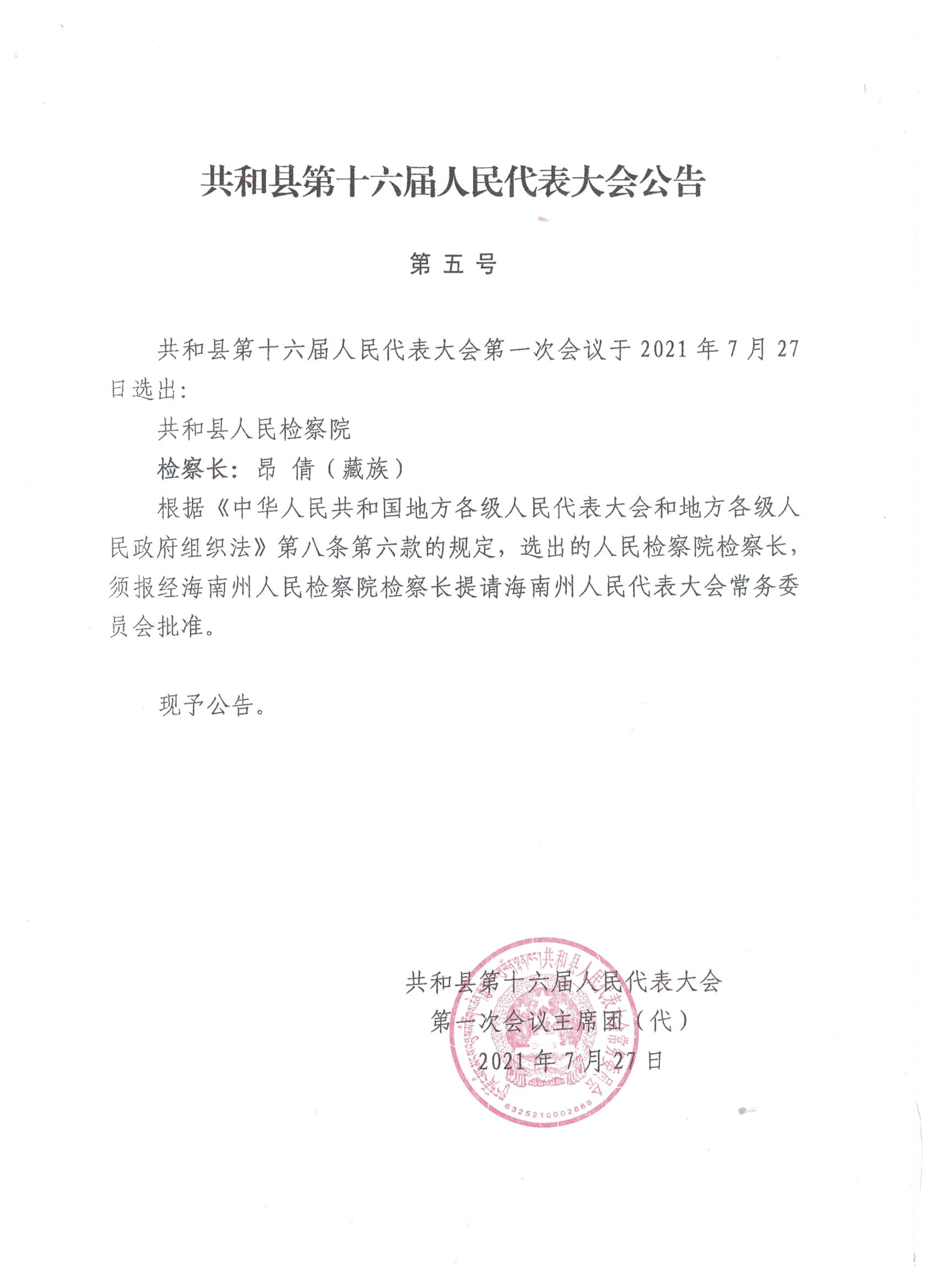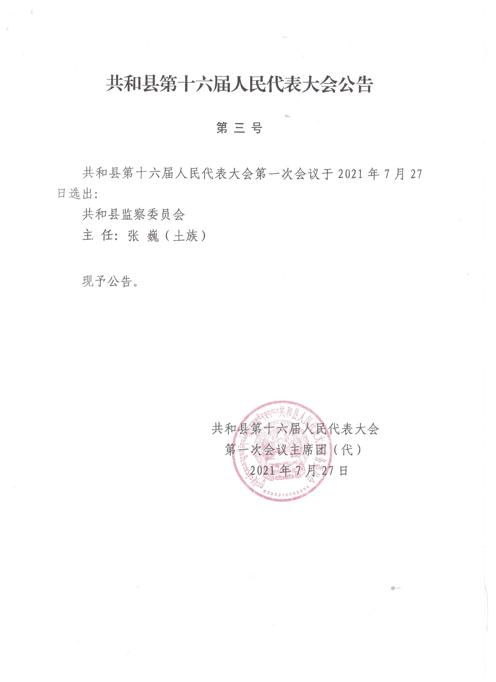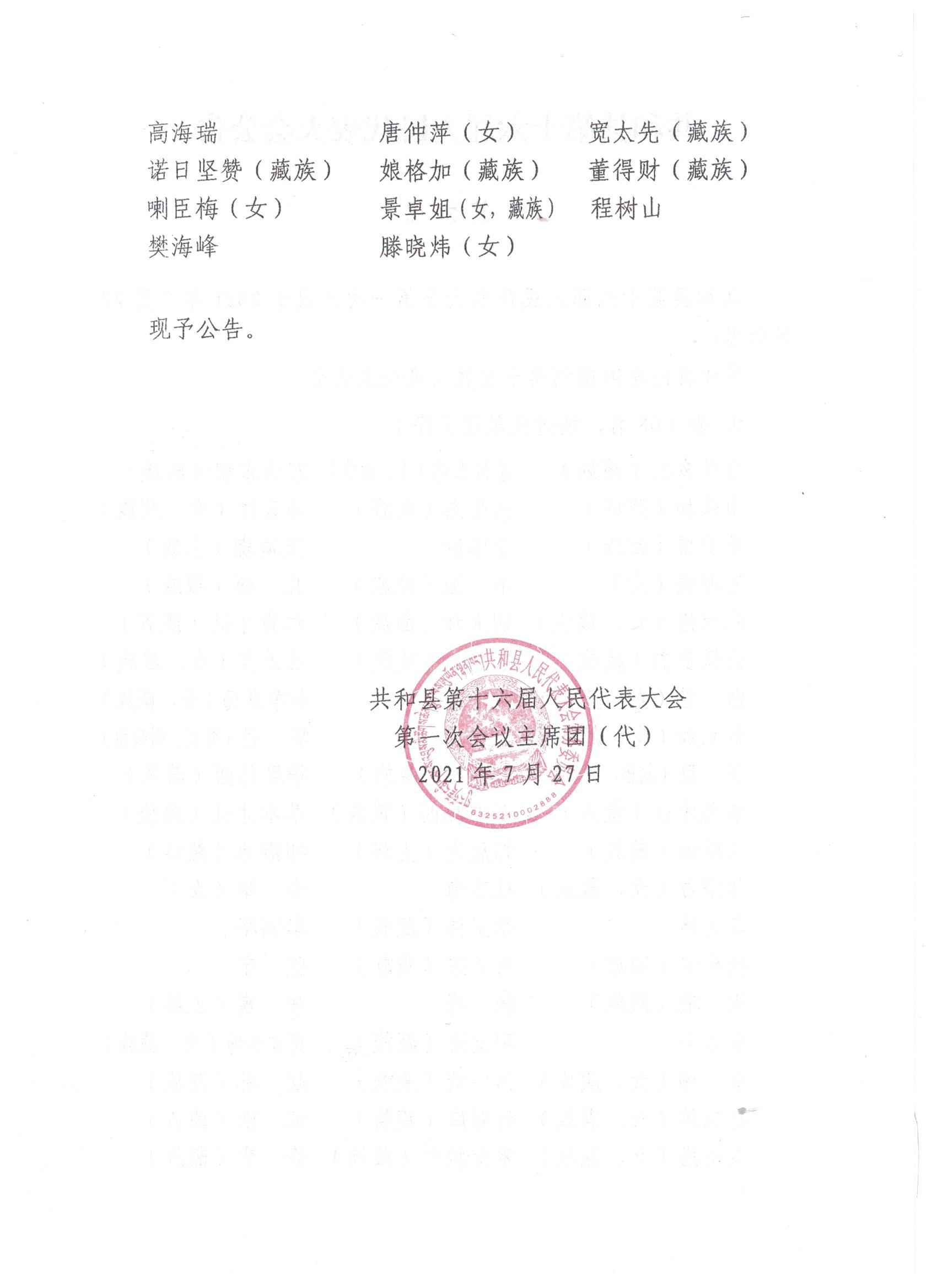共和县第十六届人民代表大会公告(一至七号)