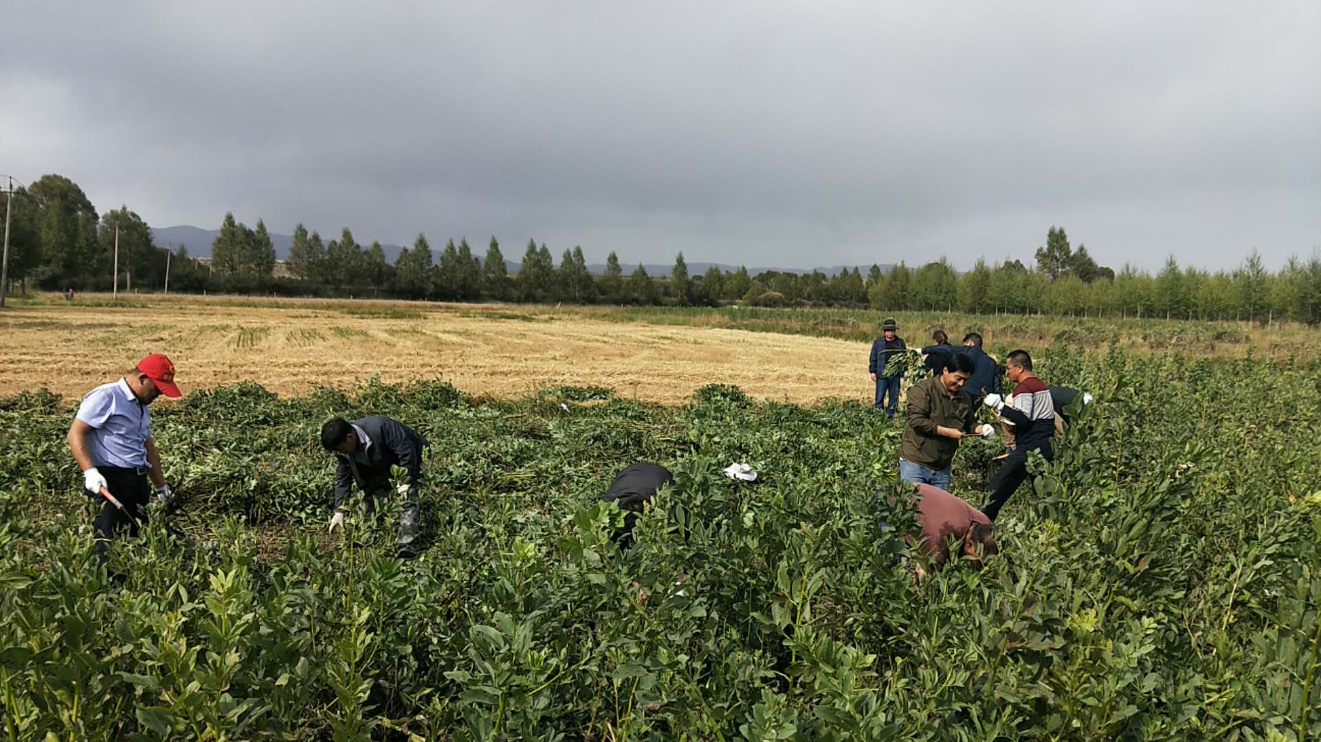 乡人大主席带领主席团成员到达目的地,进行了简单的任务分配和工具发放后,迅速各就各位进入工作状态。大家分工明确,有序进行。尽管绵绵细雨,主席团成员们都不喊苦、不叫累,很快投入到抢收的行列。汗水与雨水混杂在一起,大家团结一心,共同协作,经过3个小时的努力,将鲍虎家2.8亩蚕豆全部收割完毕,打赢了“抢秋”之战。看到乡主席团成员们收完自家的蚕豆,鲍虎老人满怀感激的握着大家的手激动的说不出话来。